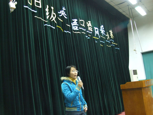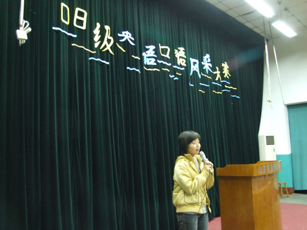 此次比赛是我校艺术节系列活动之一,在校领导、老师的关心支持下,由08级英语协会牵头主办。在比赛的现场,选手们激情飞扬,整个教室成了英语交流的世界,主持人流利英语主持,评委团设置的现场随机抽题回答彰显出了选手们扎实的英语口语表达功底。由高一高二的学生代表组成的评委评出了本次英语演讲比赛的各个奖项。