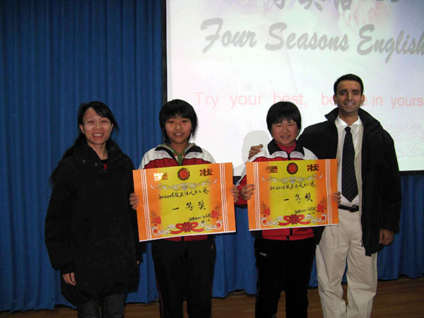 最佳英文歌手: 1班 赵逸斐 戚莹雪 7班 刘亚洁 王烨坤