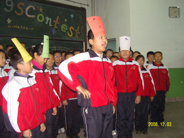 12月3日下午活动课时间,初一年级组为了激发学生的学习兴趣,突出英语教学特色,举办了英文歌曲合唱比赛。六个班的全体同学精神饱满地登台演唱了他们的拿手曲目。优美的歌声、纯正的发音、灵活多样的表演形式,博得在场师生的热烈掌声。小同学们在看台上是文明观众,在舞台上是明星演员,充分体现出了初一年级学生良好的精神风貌。初二年级的同学友情客串,使得比赛高潮迭起。孩子们在活动中表现出来的活泼可爱、天真烂漫,深深地打动了在座的各位学校领导和评委。