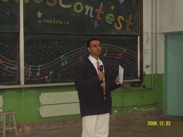 最后,外籍教师Kris先生与教务处主任张萍老师与同学们现场英语交流互动,外国语学校校长刘宇威老师寄语初2008级全体同学:“学好英语,走向世界”。