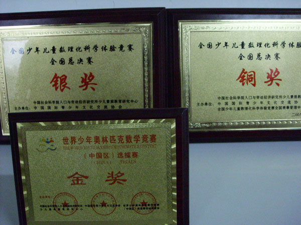 另悉,8月份在济南举行的全国少年儿童数理化科学体验竞赛数学总决赛,初2006级7班李泽同学获银奖,8班张基钧同学获铜奖,初中数学组马新红老师获优秀教练员称号。