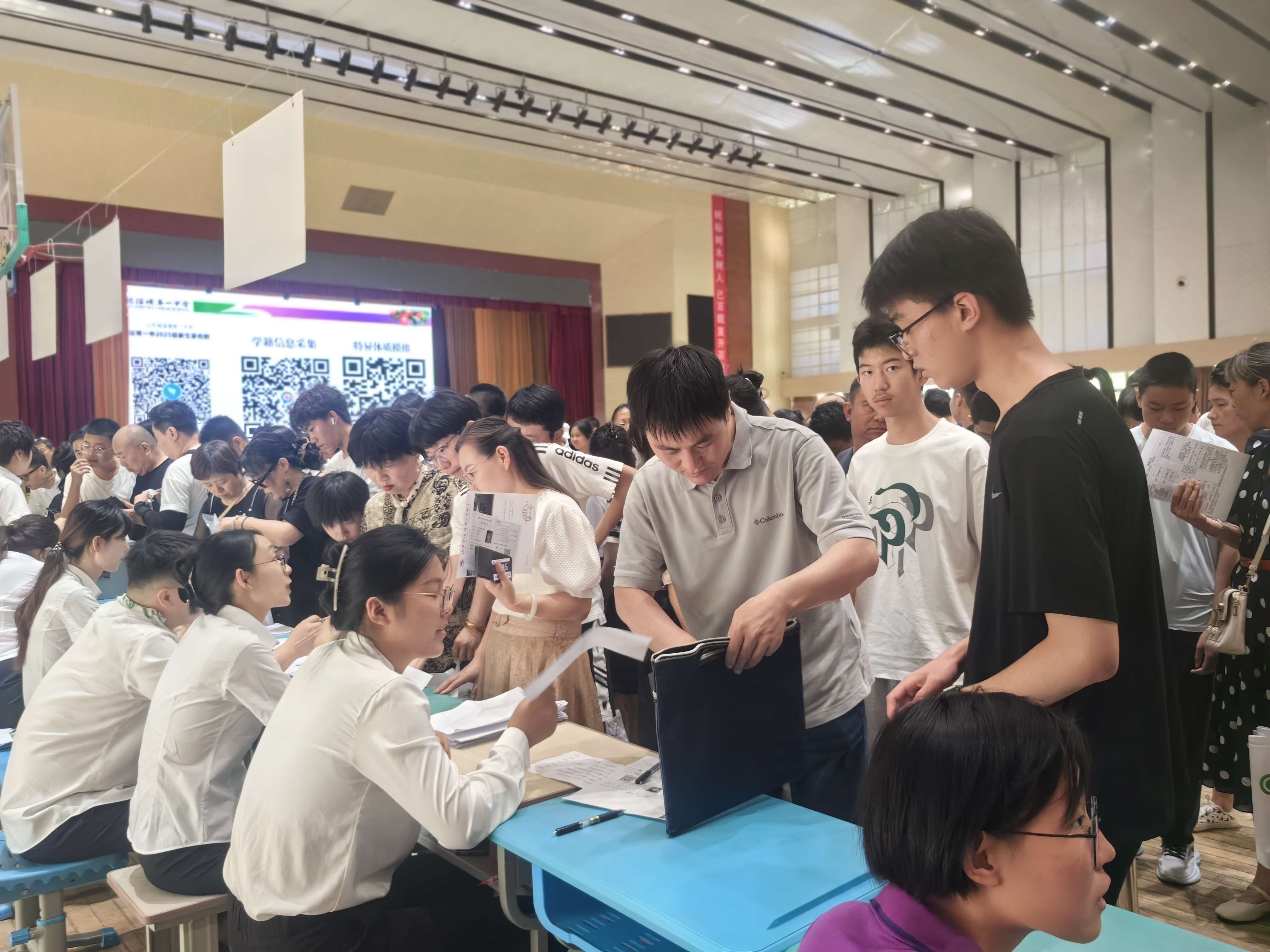 家长咨询区,学校相关负责老师耐心细致地解答住宿安排、食堂就餐、经济困难学生资助政策、校服款式及订购方式等家长普遍关切的问题,“一中人、一家人”的协同共进氛围似盛夏骄阳温暖人心。
