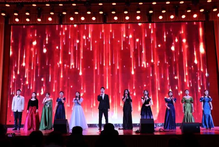 艺术歌曲联唱环节温情洋溢,《我怎样去爱你》《父亲的草原母亲的河》《越人歌》等经典曲目接连唱响。学子们用清澈真挚的歌声,传递深沉的家国情怀与美好的青春理想。群舞《苏区母亲》则以细腻舞姿与饱满情绪,再现革命岁月中母亲的坚守与奉献,红色精神在艺术表达中熠熠生辉。