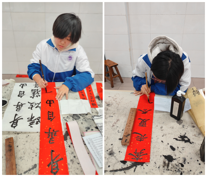 大赛历经命题、创作、评选、征集、书写与展示等环节,最终一批充满青春力量、寄托新年祝福的原创对联脱颖而出。“求知有道怀远志,题海无涯敢扬帆”“一中学子志存高远誓遂凌云之志,同学少年大展宏图共赴锦绣前程”等优秀对联展现了同学们的才华与创意。一幅幅作品,被张贴于高一、高二各班级门口,为校园增添了浓厚的节日气息。