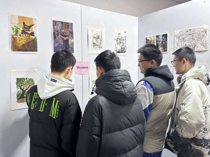展区内,师生们驻足品鉴、交流探讨的身影成为一道亮丽风景。参展同学主动邀请师长、好友参观自己的作品,分享创作背后的故事,脸上洋溢着喜悦与自豪,那份"渴望被看见"的成就感,在目光交汇的瞬间悄然绽放。