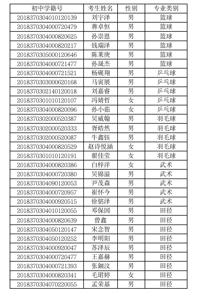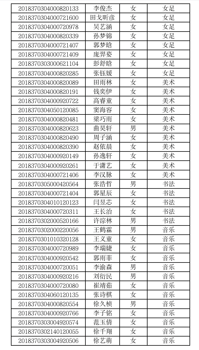 淄博一中2022年艺术体育特长生预录取名单公示 日期:2022-07-02 来源:本站 X 根据《淄博市2022年中考工作意见》,按照《淄博一中2022年艺术体育特长生招生录取实施方案》,现将我校艺体特长生预录取名单公示如下。公示后,经区教体局审核,提交招生管理平台,由市教育局复核确认、网上公布正式录取结果。