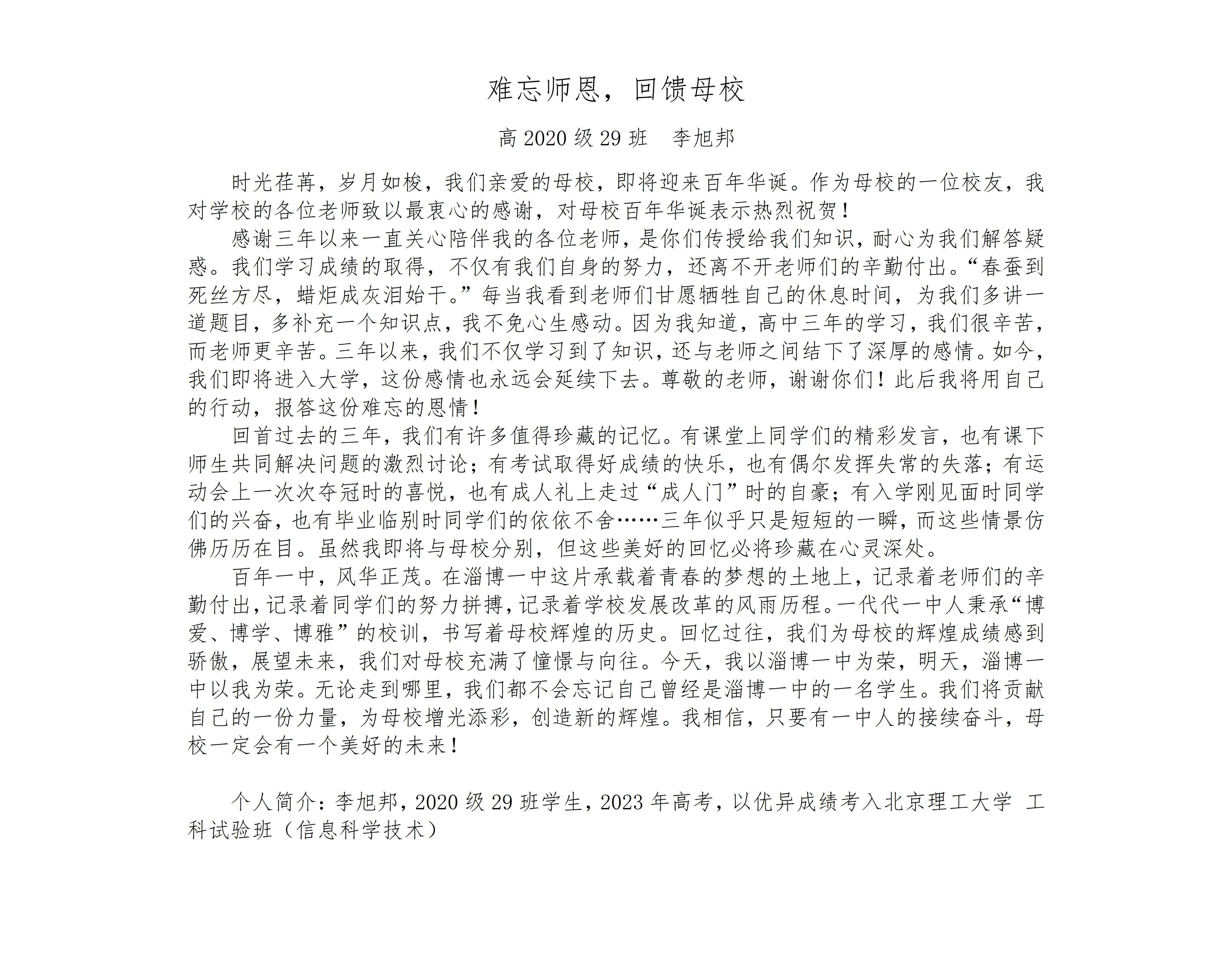 淄博一中赋