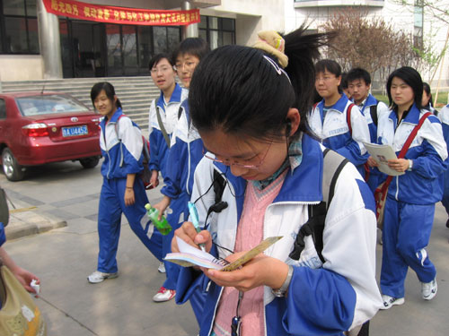 早晨6:20分,同学们早已整齐着装,等候在校本部篮球场地,带队老师经过简单的讲评后,同学们集体乘车踏上了通往山大的旅程。不少同学心里不停地问:山大是什么样子?大学生活是不是很轻松?