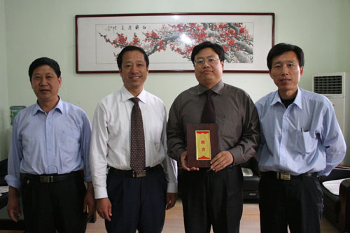 5月7日,学校举行简单而热烈的授聘仪式,由陈贞凯校长向校友胡友谊同志颁发“淄博一中常年法律顾问”聘书,副校长张业玉、工会主席孙希刚出席仪式。