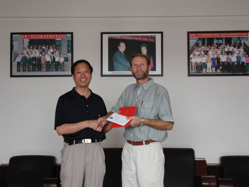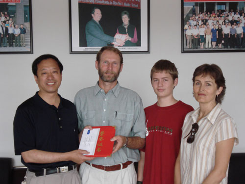 Henry博士表示,自从他参加了外语学校党团支部与博山二中开展的“手拉手、同发展”联谊活动后,深为我校广大老师的爱心所感动,临行之前想表达他们对于贫困学生的一点心意。陈贞凯校长代表学校接受了他的捐款,并感谢他们一家在淄博一中期间,不仅很好的完成了中英联程班的专业课的教学工作,还积极配合英语教研室参加了各个年级的英语活动,受到了师生的一致好评。