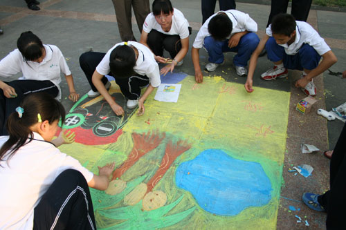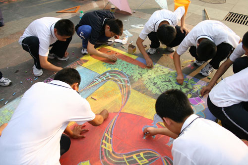 高2005级举办“迎新生”粉笔画比赛 日期:2006-06-02 来源:本站 X 为丰富同学生活,装点校园文化,建设美丽和谐校园,由教育处、高一学生会、团支部联合组织的“迎新生”粉笔画比赛,于5月31日下午在信息图书楼前如期举行。经过两节课的比拼,最终,高一五班、十二班、十一班分获前三名。