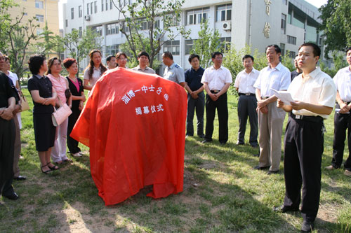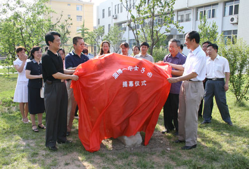 6月16日,高1980级文科班校友代表一行14人回访母校,淄博一中“士子园”揭幕仪式隆重举行。当年的语文老师、老校长杨运德,学校领导陈贞凯、张业玉、胡波、李诚等出席,工会主席孙希刚主持仪式。