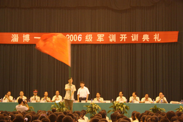 牛瑞洲副局长代表市教育局向博山区政府、人武部多年来对教育事业的关心和支持表示衷心感谢,对淄博一中夺得2006年高考全市第一的优异成绩表示热烈祝贺,他勉励同学们,站在新的起点上,要严格要求自己,虚心向教官学习,增强集体主义、组织纪律观念,磨练坚强意志,培养吃苦耐劳精神,把军人的优良作风落实在今后的学习和生活中,为开创自己美好的未来奠定坚实的基础。