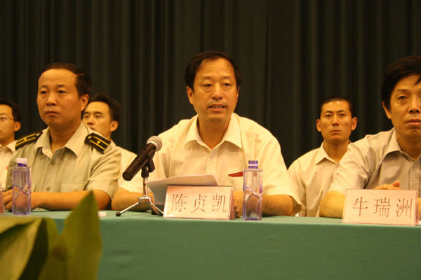 陈贞凯校长在讲话中首先代表全校师生向市教育局,博山区政府,区人武部的领导和全体参训教官表示热烈的欢迎和衷心的感谢,并向参加军训的全体同学提出了四点要求和希望。第一、每个参训的同学都要以饱满的热情投入训练,以勇争第一的精神状态完成训练任务;第二、要一切行动听指挥,时时处处用军人的标准要求自己,严格执行纪律;第三、要虚心向解放军学习,听从教官的指挥,勇于吃苦,乐于吃苦;第四、要强化安全意识,无论是课上还是课下,都要注意安全,杜绝伤害事故的发生。