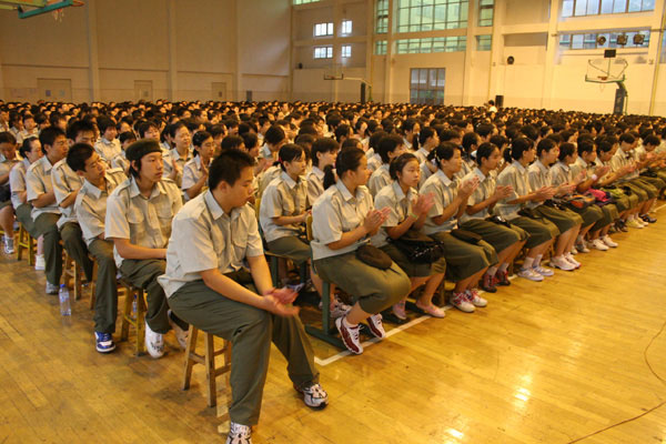 8月15日,我校在体育馆隆重举行高2006级新生军训开训典礼。伴随着雄壮的中华人民共和国国歌,为期10天的新生军训拉开了帷幕。