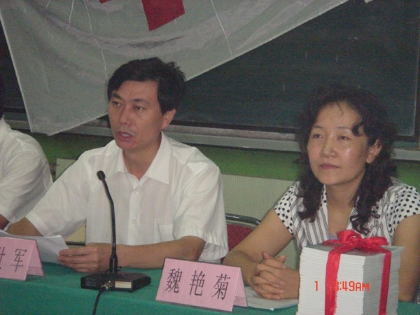 魏艳菊副会长在讲话中首先代表市红十字会,向热心红十字事业的广大志愿者、红十字青少年表示亲切的问候,向关心、支持红十字事业的市教育局、淄博一中致以诚挚的谢意。她指出,青少年学生是祖国的未来,是民族的前途和希望,在中小学生中开展初级卫生救护培训,使青少年学生熟练掌握并运用初级卫生救护知识和技能,对于提高他们的自救互救能力,弘扬人道主义精神,更好的保护人的生命和健康有着重要的意义。淄博一中作为全市教育的龙头学校,主动适应时代发展的要求,围绕加强和改进未成年人思想道德建设,积极探索素质教育的新模式,开展了一系列丰富多彩、富有成效的红十字青少年活动,连续十七年举办红十字青少年夏令营活动、设立爱心基金会资助特困生、开展尊老敬老活动等,在今年6月举行的全省红十字青少年工作会议上,淄博一中作了典型发言,得到了省红十字会领导的高度评价,为全市乃至全省创造了经验。她希望同学们珍惜这次培训机会,努力掌握初级救护知识和技能,让脆弱的生命坚强起来,让生命之花开得更加艳丽。
