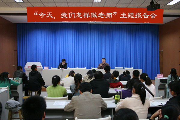 团委副书记曹勇老师主持了报告会,高雪长副校长出席了大会并做了题为《今天,我们怎样做老师》的报告。在报告中,高校长运用大量生动、实用的事例对我们现在的教育教学进行了形象地阐述。他指出随着整个教育大环境的变化,决定了教师的教育教学理念也应随之更新。现在的教师应该充满热情,尊重学生人格、平等对待学生、关心爱护学生,要用自己的实际行动引领学生,要注意发现学生的优点、相信自己的学生能够取得成功,同时教师还应该维护自己的尊严,勇于挑战自己的极限,使自己永远保持上升的心态。