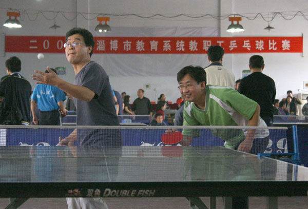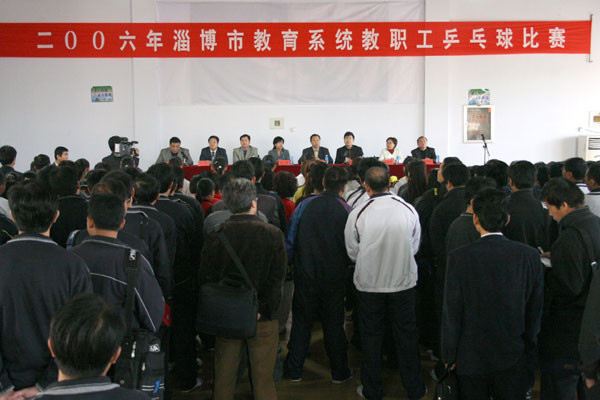 全市教育系统乒乓球比赛 日期:2006-10-31 来源:本站 X 全市教育系统教职工乒乓球比赛于10月26日、27日在淄川二中举行,我校代表队取得优异成绩:常承秀、马伟光在男子双打比赛中荣获亚军;我校代表队荣获男子团体第三名;女子团体第五名。