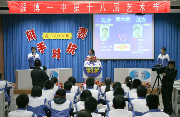 为培养学生的思辩能力,筹建辩手协会,根据学校第十八届艺术节整体活动安排,12月17日,学校教育处、团委会、文综教研室和高2006级领导小组联合组织了“激扬青春,放飞梦想”主题辩手对抗赛。