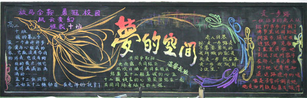根据学校第十八届艺术节活动安排,学校团委会、艺术中心在高2006级、高2005级各班组织开展了以“温馨我班”为主题的黑板报比赛。各班精心编排,用美丽的图片和华丽的词藻,描绘出一幅幅班级建设的蓝图。这次活动,融思想性和知识性为一体,既培养了同学们搜集材料、动手操作的实践能力,又为班级建设和融合创造了良好的氛围。