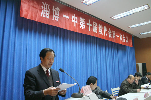 2006年12月23日下午,我校十届一次教代会在校本部学术报告厅隆重召开。市总工会民主管理部王福忠部长,市教育工会赵泮利主席,学校离休干部张华楼、刘学敏同志,陈贞凯校长,张业玉副校长在主席台就座,纪委书记刘诚主持会议。120名代表和5名特邀代表出席会议,27名同志应邀列席会议。会议的中心议题是:全面贯彻落实科学发展观,努力构建和谐校园,促进学校更快更好地发展。