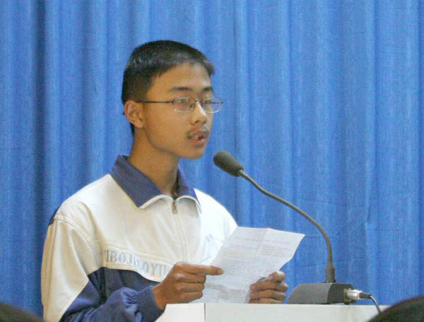 上届获奖学生、2006年淄博市中考状元我校学生柳青发言