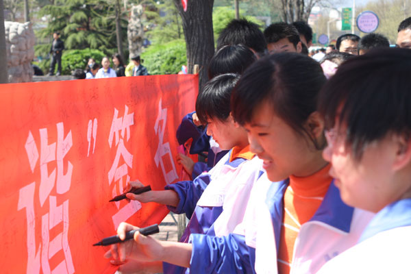 此次宣传活动,得到了博山区委、区政府和各相关部门的大力支持。区委常委、宣传部长王龙辉,区广电局局长王新生,区文明办主任李安臣,团区委书记李晓燕等领导莅临活动现场,亲切看望参加活动的淄博一中师生,并在宣传条幅上签名。