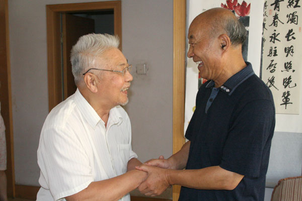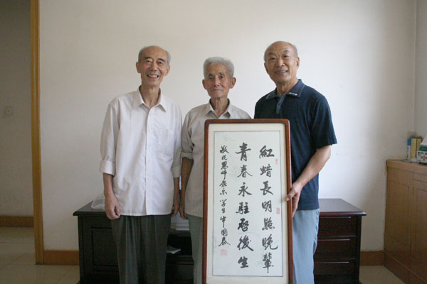 我校初6级老校友、全国优秀教师、全国中师书法教育研究会会员牛国泰将自己的书法作品送到母校,向全体老师祝贺教师节,并亲切看望了当年的班主任朱永坤老师。