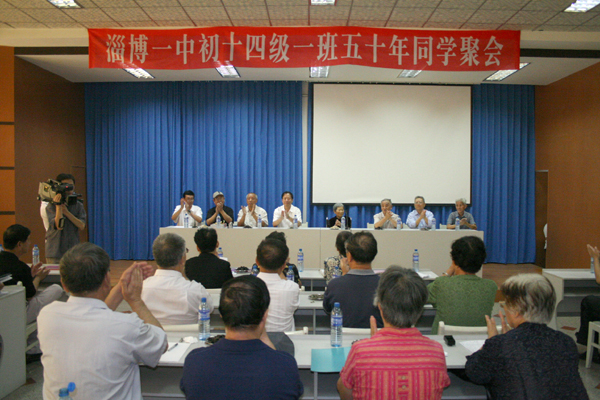 9月16日,我校学术报告厅内一群60多岁的老人聚在一起,像十几岁孩子一样,欢歌笑语,兴奋不已——他们就是我校初十四级一班的同学。1957年9月,带着对美好未来的憧憬,他们迈入淄博一中的大门,度过了三年初中生活,留下了难忘的回忆。五十年后的今天,带着对母校的眷恋与感恩、对老师的尊崇和回报、对同学的甜美回忆与牵挂,再次来到已发生翻天覆地变化的淄博一中,相聚在一起,围着心爱的老师,畅谈过去,畅谈今天,畅谈友情……