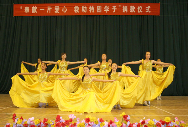 捐款仪式后,学校艺术团还进行了精彩的文艺演出,将“爱的奉献”的主旋律推向了高潮。(任明忠 贾斌)
