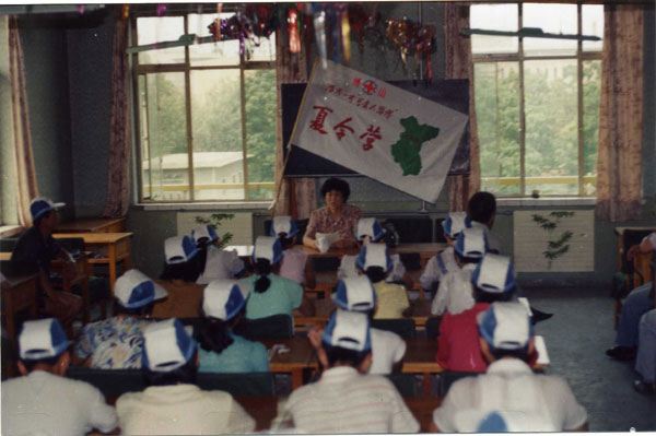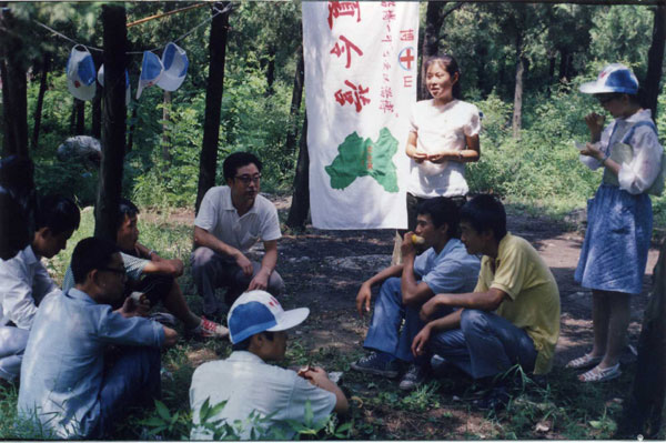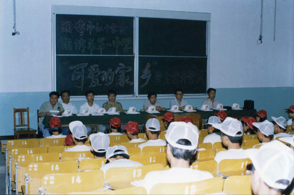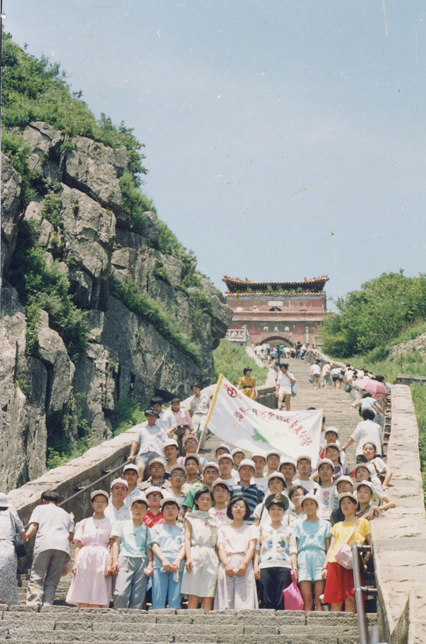 第六届“可爱的家乡”夏令营又赋予了纪念抗日战争胜利50周年的主题,队伍徒步跋涉五小时,宿营博山二中。开展联谊,参观军营,观看《山河吟》、雨中攀登马鞍山。