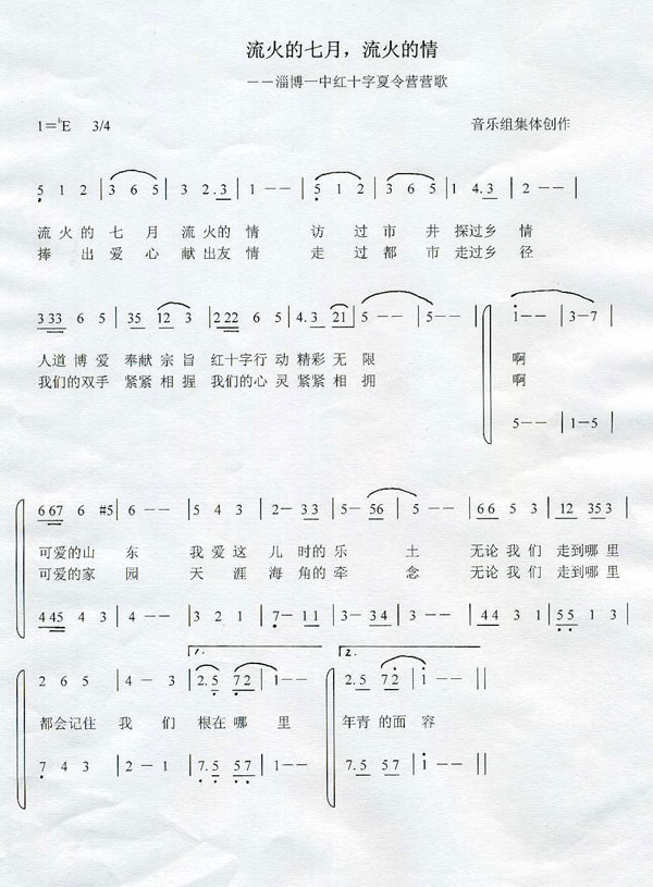 为第八届红十字夏令营创作的营歌