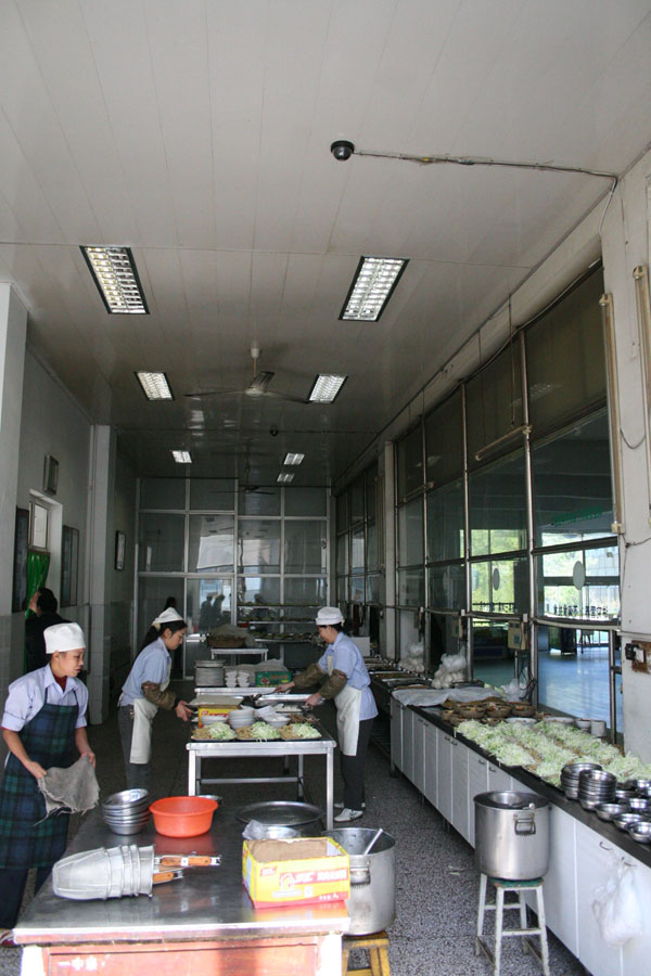 据卫生部门执法人员介绍,在近期的全市食品卫生专项整治行动中,淄博一中学校食堂为进一步规范学校食堂的生产规程和卫生标准操作程序,强化了监管手段,在食品管理量化分级达到A级的基础上,对食品加工过程的关键环节实施监控。该校投资3万多元,在学生餐厅安装了监控系统,对餐厅的配餐间、制作间、洗消间、仓库、餐厅大门等处实行了24小时全方位监控录像,最大限度地确保了学校食堂食品卫生和安全。