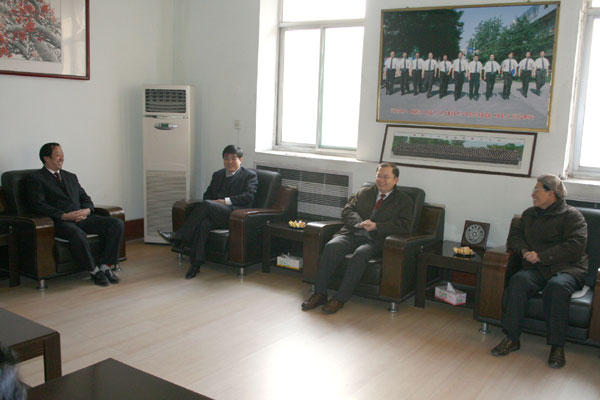 陈贞凯校长(左一)与赵玉璞校友亲切交谈