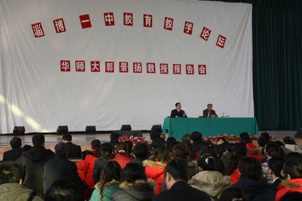 12月8日下午,郭教授以《课堂教学改革与教师的专业发展》为题,围绕“三支队伍建设”、“课堂教学研究”“教师专业发展”和“实现教学的科学管理”等四个方面做了长达两个半小时的精彩演讲,他特别强调不管是学校的管理者还是一线教师都要努力做好以下三点:一是要加强教育理论的学习,提高理性水平,引导悟性,开发灵性;二是要立足具体问题,联系实际生活,开展扎实有效的教学研究,切忌大而空;三是要确定好自己的专业发展目标,不能满足于熟练运用本学科的教学模式和教学资料,还要致力于形成自己的教育教学风格与特色,创建自己的教育教学流派。高雪长副校长主持报告会,我校全体教职工和博山区教育局刘光录副局长及机关各站室负责人、博山区初中、小学、特教等30多所学校的领导老师约计700余人参加了报告会。