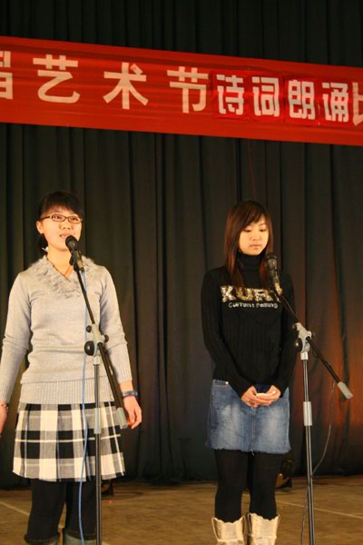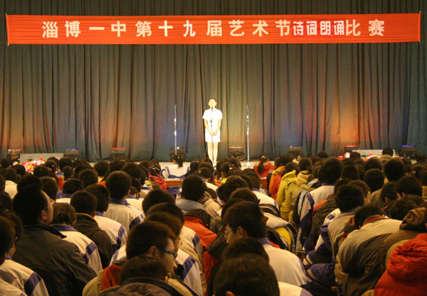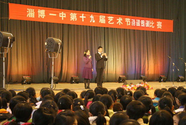 随着淄博一中第十九届艺术节的到来,12月12日,高2006级和初2005级唐诗宋词朗诵比赛取得圆满成功。