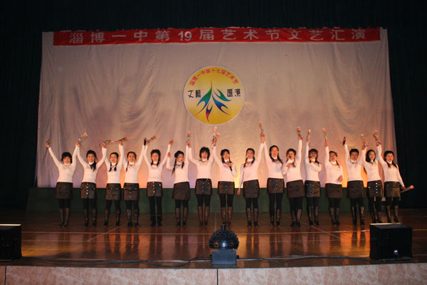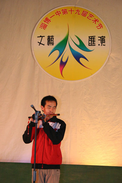 淄博盲校是我校的合作伙伴,多年来,两校发挥教育资源互补优势,开展了多项富有教育意义的活动,为视障儿童提供了接触社会的机会,也让我校学生从残疾学生身上获得了珍爱生命、自强不息的精神。这次,我们邀请了盲校70余名师生参加晚会,两位盲童分别上台演出了笛子独奏《山丹丹花开红艳艳》和歌曲《菊花台》,演员特殊的困难和娴熟的演技形成的反差,深深打动了在场的观众。