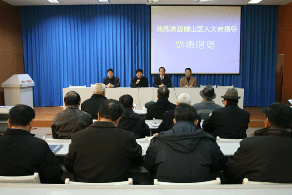1月4日,博山区人大常委会离退休老领导一行20人由孙昆华副主任带领莅临我校,就学校办学情况进行全面视察。校长陈贞凯、党委书记司志宏、副校长张业玉、纪委书记刘诚、工会主席孙希刚参加座谈。