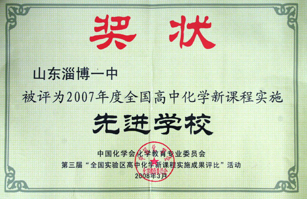 我校被评为2007度全国高中化学新课程实施先进学校