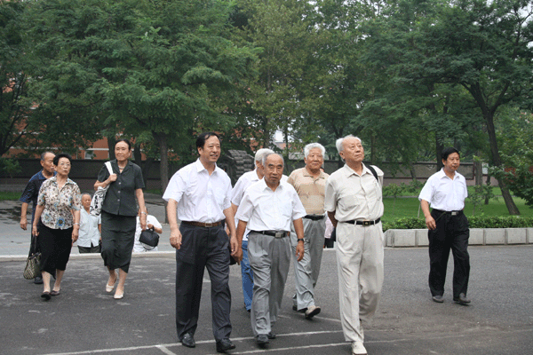 老校友回母校 日期:2008-08-30 来源:本站 X 8月28日下午,清华大学崔京浩教授、北京邮电大学李玲教授等毕业50余年的部分老校友,在上午参加了赵蔚芝老先生九十寿辰庆贺活动之后,满怀着感恩之情,重归母校。他们亲切看望了年事已高的刘鼎文老师和朱永坤老师,共话当年在一中求学的师生情意,表达了对老师的感激与祝福。 随后,陈贞凯校长、张业玉副校长、孙希刚主席陪同老校友参观了校园,老校友对母校的巨大变迁感慨万千,对母校未来的发展给予了美好祝愿。 (学校办公室)