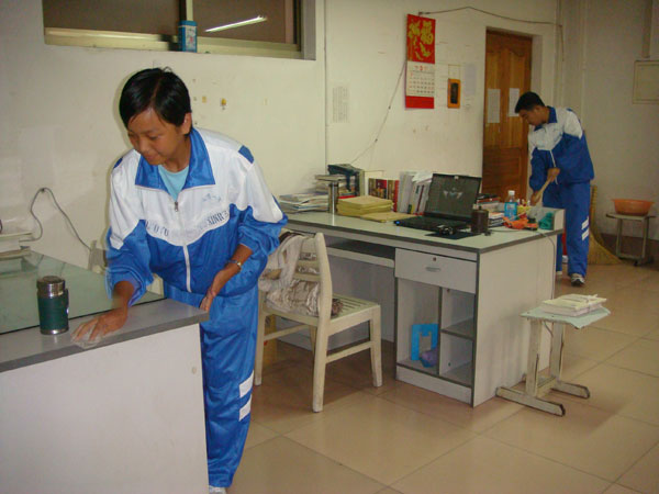 9月5日下午,高2008级教工团支部组织高2008级各班团员学生代表,来到学校行政办公楼及体育馆各教师办公室,为老师们义务打扫卫生。同学们以高度的热情,认真负责的态度,对各办公室进行了彻底的清扫,受到所在办公室老师的一致赞扬。