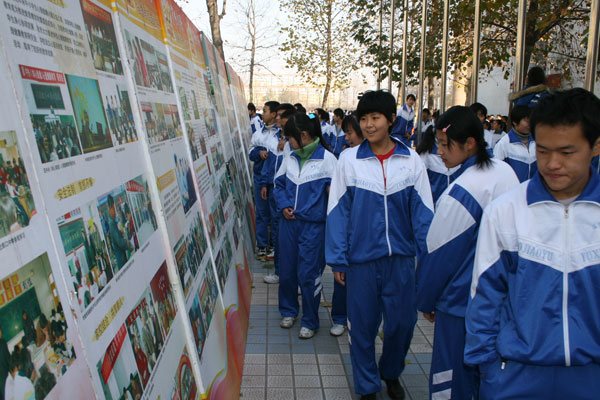 此次图片巡回展内容丰厚,版面生动,轮廓式展现了我市教育30年来取得的辉煌成就和在抗震救灾中的无私大爱,吸引了全校6000余名师生员工踊跃观看。