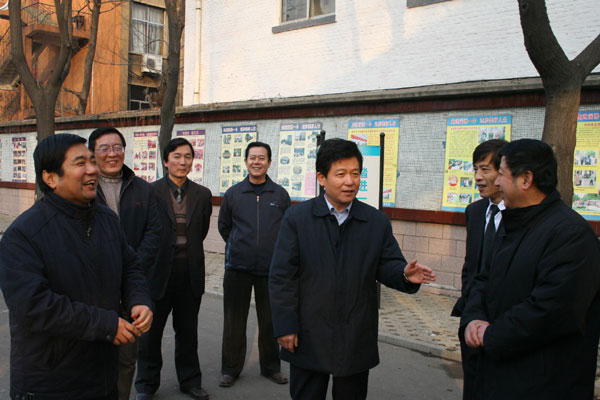 在校学校领导班子成员代表全体师生欢迎各位领导的到来,副校长张业玉介绍学校发展有关情况。岳主席表示,对淄博一中很了解,学校始终保持了良好的发展态势,再来看看,高兴的是学校又有新的发展。他饶有兴致地询问了解学校目前规模,教师队伍状况,学生人数,素质教育实施情况,对学校注重教学研究,在培养优秀学生和大面积提高教育教学质量方面所取得的优异成绩给予肯定。他还对学校积极取得博山区委、区政府的有力支持与帮助表示赞同,对区委区政府的大教育观和关心教育积极作为给予充分肯定,并对学校今后在区委、区政府协调下,进一步优化用好当地教育资源,再创优异成绩,提出了意见和期望。