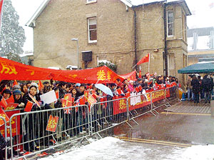 Despite the heavy snow storm which is the worst in18 years, overseas Chinese students and residents were gathering together on both sides of west road where the concert hall is located, keen to welcome our beloved premier Wen Jiabao with passion and the love to our great motherland