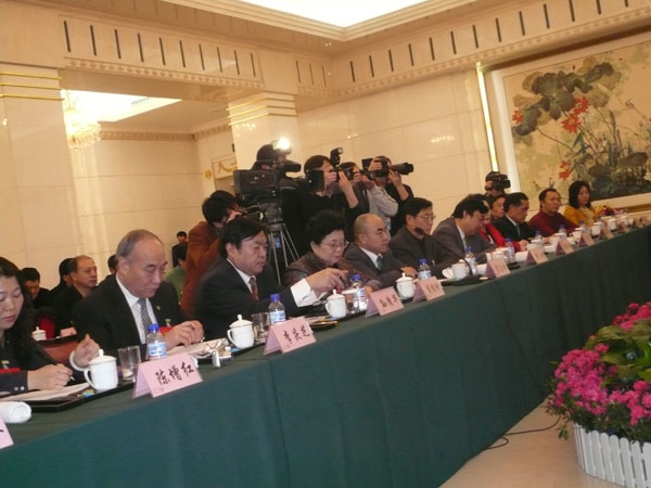 省委书记姜异康(右三)出席文艺教育界委员座谈会