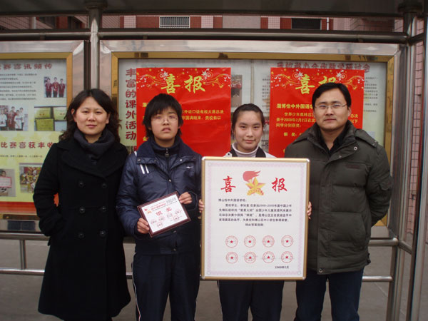 另悉,在“星星火炬”全国少年儿童英语风采展示活动总决赛中,初四、8班的李如意同学摘得银奖,是博山区5名获奖选手中奖项最高的选手,组委会特别致信怡中外国语学校祝贺。