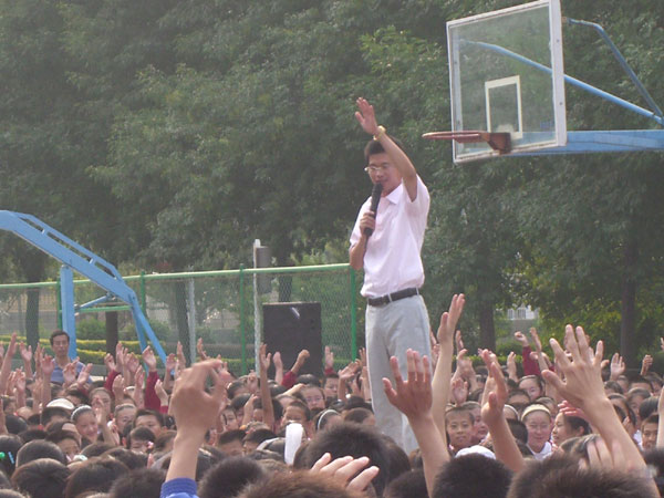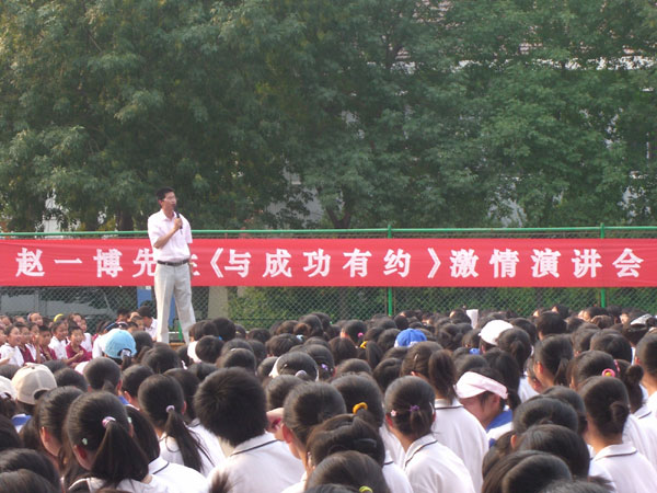 2009年6月16日下午,我校邀请全国著名心理专家、潜能激发大师、演讲大师赵一博先生,为我校高一、初中3000余名师生作了《与成功有约》激励教育演讲报告。