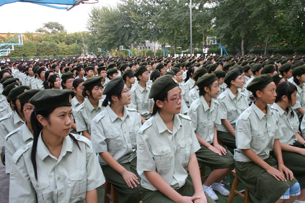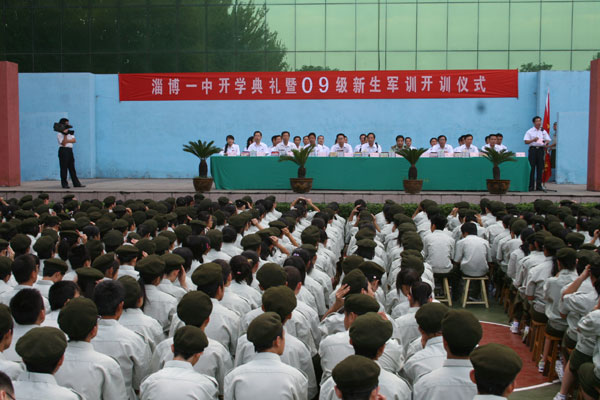 陈贞凯校长发表讲话,他首先代表全校师生向区人武部的领导和全体参训教官表示衷心的感谢,向升入我校的优秀学子表示诚挚的欢迎。他指出,新学期学校德育工作的重点是继续围绕“学会做人,学会求知,学会生活”的育人目标,教育引导同学们做“感恩的人,和谐的人,诚信的人,有责任的人,有修养的人”,通过各种形式培养大家良好的道德品质和健全人格,教育处和班主任将加大《学校关于进一步强化教育常规管理意见》的实施力度,重点抓好发型服饰、男女生过密交往、校内使用手机、网络文明、同学之间和谐相处、餐厅秩序等热点问题,对违规违纪同学从严处理。特别需强调的是,《山东省学生基础素养评价方案》已全面实施,评价结果对高中毕业、高考录取等产生直接影响。今年高考录取,不少大学对综合素质评价成绩差的采取降低专业层次和拒录措施,如临沂师范学院对十几名评价低的同学不予录取。请同学们明确评价内容,按规定要求自己,争取毕业时不仅有好的高考成绩,更要有高的评价成绩。全校各个年级都有不同的学业任务要求,尤其是毕业班的同学,高考和中考是人生的重要选择,要确定好个人奋斗目标,奋斗一学年考上理想的大学和高中,实现自己的梦想。高中非毕业年级面临学业水平考试和学年模块统考,要按照新课程方案要求,全面完成必修课程,尽可能多一些选修课程。在学习中不断提高方法、素质、能力。现在高考命题已逐步趋于新课程要求,趋于素质和能力考察。只有在平时打好基础,才能应对高考。各种综合实践活动是全面提高的重要途经,请同学们按学校安排要求,主动参与学校组织的各项活动。他强调,今年10月18日我校将举行建校85周年庆典。届时,海内外校友将云集母校,名校友将与同学们座谈交流。学校还将组织一系列校庆活动,在校的同学赶上校庆庆典是非常荣幸的,大家要以实际行动、优异成绩为校庆献礼。通过校庆活动,增强一中人的自豪感和荣誉感,实践“今天我以一中为荣,明天一中以我为荣”的誓言。最后,他代表学校向同学们提出了五点希望:一是要有远大的理想和目标。有人说得好,生活的理想就是为了理想的生活,人生的价值就是为了创造有价值的人生。理想可以产生动力,可以规范行为,可以改善自己的学习与生活,没有远大理想和明确奋斗目标的人,不可能成为社会的栋梁。请同学们尤其是高一新生开学后,都要按学校要求做出人生发展的规划,确定奋斗目标,并制定实现目标的具体措施。二是要有健康的体质和心态。健康的身体素质和心理素质是一个人成功的重要基础条件。没有良好的体质和心态,在今天不可能很好地完成繁重的学习任务,将来也不可能担当大任,成为社会的英才。因此,同学们应当从每一天做起,通过坚持不懈的锻炼和科学的调适,使自己保持健康的体魄和良好的心态。作为高一的新同学,军训是高中的第一课,你们要以饱满的热情投入训练,以勇争第一的精神状态完成训练任务;听从教官指挥,勇于吃苦,乐于吃苦;尤其要强化安全意识,杜绝伤害事故的发生。三是要有良好的品质与修养。要有感恩之心、敬畏之心、宽恕之心、博爱之心,要树立尊重意识、责任意识、规则意识、进取意识。志向高远,品德高尚,行为高洁,谈吐高雅,彬彬有礼,学识高超,处处体现淄博一中学生应有的内在素质和外在形象。四是要有必需的知识和能力。知识是基础性的,能力主要是指学习能力和实践能力,也包括应对不同环境的生存能力。这知识和能力,在今天,是你们如愿进入优质高校深造所必需的;在以后,则是你们作为社会栋梁履行为大众服务的社会责任所应必备的基础。五是要有科学的学习计划。“凡事预则立,不预则废”。新课程方案要求同学们要在高中阶段完成八个学习领域、十七门的必修课程,另外还有大量的选修课程。在规范办学的今天,每年的假期和双休日共计174天,在校学习期间每天的自习时间为1/3,要求同学们一定规划好每一周、每一天、每一节课,谁支配好了时间,谁就有高质量学业成绩的主动权,谁就赢得人生。合作探究、交流、自主学习能力的培养对高一学生尤为重要,要尽快转变学习方法和习惯,适应高中学习和生活要求。有人说人生只有三天:“昨日、今日、明日”,昨日我们不曾虚度,今日我们播下希望的种子,明日我们才会梦想成真。