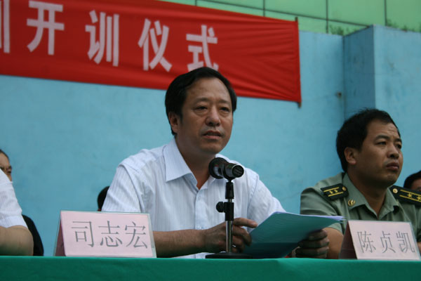 会上,乔敏刚副部长向军训团授军旗,教官代表和参训学生代表分别作了表态发言。