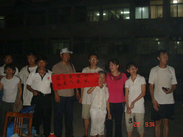 22日早,天空还算晴朗,快接近初亏时却阴了起来,我们的心情比天空中的乌云还沉重。可旁边从英国赶来的老外却选择在全食带上的中国,食甚时刻为夫人庆祝生日。老外说,我们虽然没看到日全食,但是我们看到了白天瞬间变成了黑夜!确实,我们也没有什么遗憾了!我们得到了与众多天文爱好者交流的机会,交谈中,他们都非常羡慕我校能有这样的举动,他们记住了淄博一中,也记住了淄博一中的素质教育是体现在行动上的。